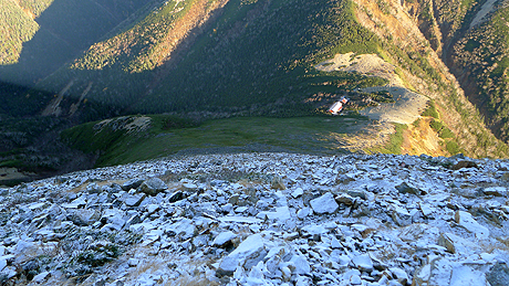 ※常念岳の登り途中。常念小屋を見下ろす。6:49