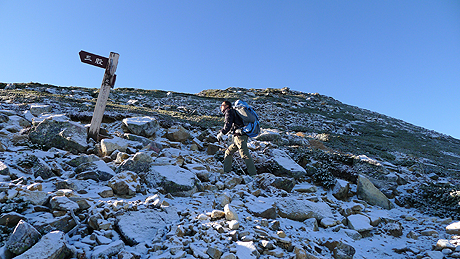 雪上のトレースの主で、まだ真っ暗な時間に小屋を出発したそうな・・・。