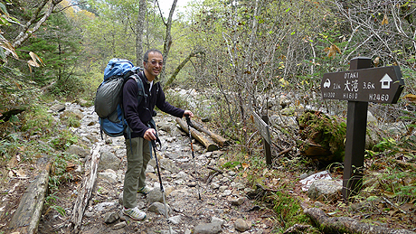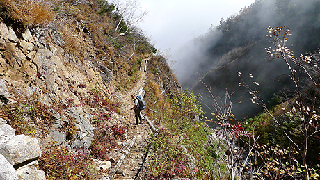 松本盆地側からはガスが湧いて、沢沿いは寒い。
