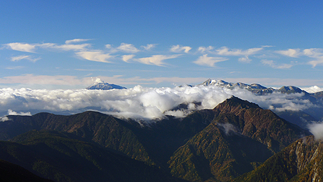 遠く日本海方面の峰々、立山・剣方面も綺麗に見える。