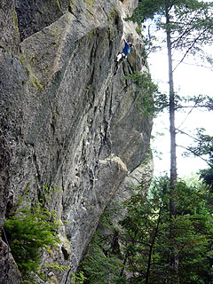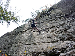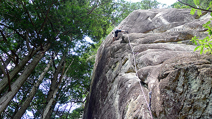 アップ。『ミルクミルク(5.10c)』からトップロープをかけてトライ。最強の5.10d?・・・なんと落ちてしまいました。