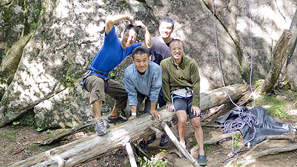 出発がいつもより遅れ、東名集中工事の影響で中央高速もトラックが非常に多く、植樹祭の駐車場にはいつもより遅い時間に到着した。仕事疲れも重なり、疲労困憊。。。おかげで朝寝坊した。 用意して、岩場に着いたのは昼の12時近くだった。
