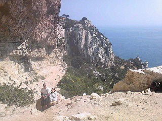 ※写真はCalanques(カランク)、Paroi des Toits(パロワ・デ・トワ)で。快晴、これぞ南仏!の風景です。でも、写真では日陰の左上のハング帯もこのあとすぐ日向に・・・