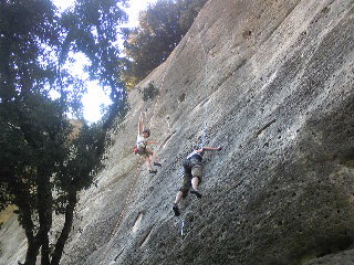 昼過ぎからBuouxへ。シーズン外れなのでとても静か。私達の他は2組だけだった。今日はTCFエリア。日向は激しく暑いが日陰は涼しくて快適。ルートが日陰になる14時頃からクライミング開始。