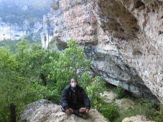 Venasqueの岩場はサンピエールに行ったのだが・・・こんな時期だし平日だし、誰も居ないだろうと思ったら、意外にも2組いた。しかも1組はアレックス・ディュボックやジャン・マルク・トルシエ(!)などローカルクライマーの重鎮達! ビックリです。トルシエが作ったルートには今だにずいぶんお世話になっています(taboo等など)。まさかこんな場所でお会いするとは・・・(こんな岩場にも来るんですね)。トルシエが作ったルートを登るたびにウィットに富んだ意表をつくホールド・ムーブの数々にいつも感服しています。だいぶ年配になってますが元気に登っている姿を見れて嬉しかった。少しお話しして記念撮影させてもらった。。。