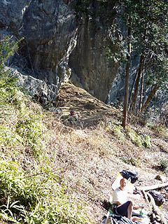 河又は5年ぶり。5年前に難しそうなところから手をつけて、『なぐり愛(5.12b)』『一期一会(5.12c)』『マンモス・ケイブ(5.13a)』と順調に登り、調子の良いところで、『さっちゃん(5.12b)』をトライしたら全然出来ず、指も痛めてガックリ来て、その後はご無沙汰だった。。。そうだ!そういう苦手ルートこそ克服しないと・・・。