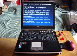 昨夜から外付けのHDDへデータを退避開始・・・。 調子が悪いので転送に異常に時間がかかる。データが壊れていないかもちょっと心配。。。 今朝の起動ではとうとう、この(↓)エラーも出てしまった。