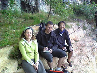 岩場にローカルクライマーのグループがいたので新ルートについて質問したら、新ルートと新エリアを書き込みしたトポを貸してくれた。早速、書き写し。大収穫だった。