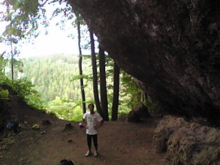 私が『何をやろうかな?』とルートを眺めながら7cの前に立つていたら、居合わせたドイツ人が『そのルートは面白いよ。ルート中に動物もいるし・・・』とやたら薦めるのでやってみた。登ってみるとルートの上部で一カ所ホールド(手掛かり)の奥が空洞になっていて、中に居たのは小鳥の雛が3匹・・・口を大きく開けてピーピーと親鳥が運んで来るエサを待っていた。つがいの親鳥は、私が登っている間は巣に近付けずにエサをくわえたまま、周りをウロウロ・・・。ま、ルートは確かに面白かったが、小鳥に悪いことした気分。。。