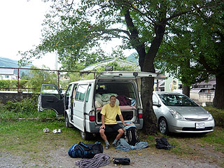 駐車場の廃校で。