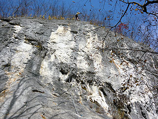 ヌンチャク掛けながらオンサイト。上部の核心はなかなかムーブが読めず、一か八かで強引に登ったがきわどかった。しかもボルト足下で核心ムーブをこなさないとヌンチャクを掛けれないので落ちるとロングフォールになる・・・ちょっと冷や汗だった。内容はとても面白かった。