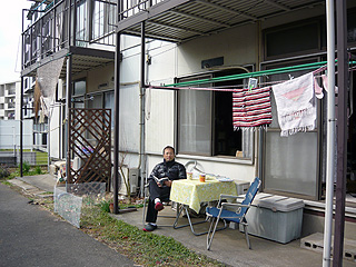 軒先スペース(いちおう庭と呼んでますが・・・)も片付いて、テーブルと椅子を設置。