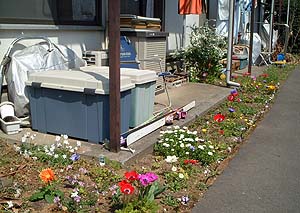 昼頃、土(つち)仕事をした。 部屋の外にちょっとした土のスペースがあり、雑草除けと和みのために時々いろいろな草花のタネや球根を撒いている。 殆んどは根付かず、うまく育っても1~2年で雑草に負けて消滅をしてしまうのだが、何年も前に植えた通年性のクローバーのような球根がなかなか頑張っている。 所々にコロニーをつくって雑草に負けずに繁殖している。 草むしりのついでに、株分けをして庭(?)のあちこちに植え替えてあげた。