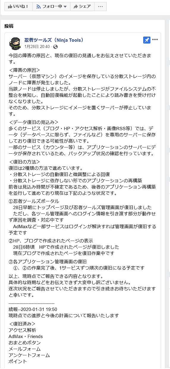 今日の業後にfacebookで忍者ツールズ(Ninja Tools)をチェックしたときは、まだ程遠そうな感じだったのですが、さっき(22時)に再チェックしたら投稿可能との報告が出ていた。